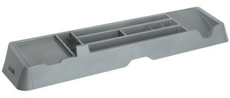 Rendszerező asztali Exacompta fényes szürke Műanyagból készült asztali rendszerező Modern és vonzó kivitel Több különböző rekeszből áll, melyek különböző eszközök tárolására szolgálnak: öntapadós jegyzettömb, ragasztószalag, névjegykártyák, borítékok, tollak stb Külön kialakított rekesz, ahol a mobiltelefont töltés közben is el lehet helyezni Két apró fi