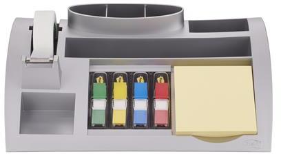 Műanyag testű, egyedi formatervésű, hat rekeszes, különféle méretű jegyzettömbök tartására alkalmas asztali jegyzettömb- és írószertartó.