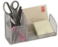Praktikus kialakítású fémhálós asztali rendező az átlátható, hatékony hétköznapokért. - igényes kidolgozású fém kivitel - lekerekített, egyedi formák - tartozékok nélkül - irodába és otthonra is ideális - praktikus eszköz az asztal rendben tartására - jegyzettömbtartó rekesz - levéltartó rekesz - külön rekesz hosszabb eszközök (írószerek, vonalzó stb. ) szá