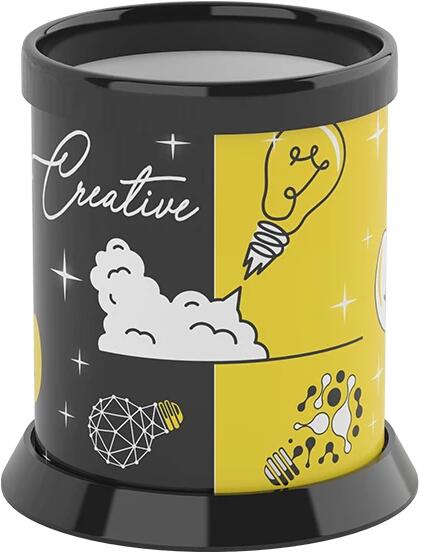 Kreatív motívummal díszített henger alakú, asztali írószertartó.