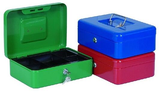 Acéllemez pénzkazetta, nagyon erős lakkozással. Biztonsági zár 2 kulccsal. A kazettákban műanyag pénzérmetartó van.