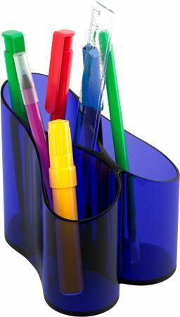 - asztali írószertartó - 4 rekeszes - friss színek, fényes, átlátszó anyag - átmérő: 110 mm - magasság: 105 mm - tartozékok nélkül