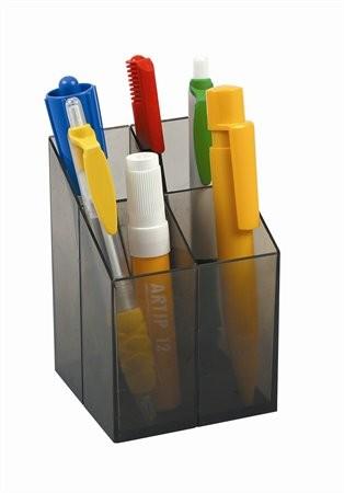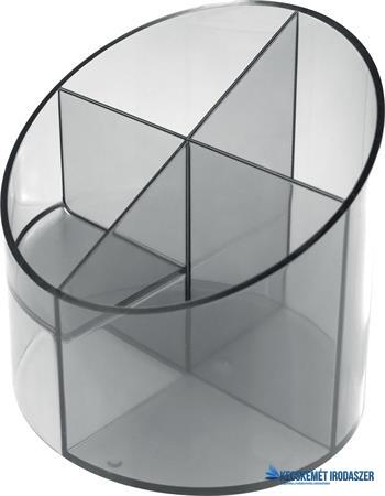 - asztali írószertartó - 4 rekeszes - friss színek, fényes, átlátszó anyag - átmérő: 110 mm - magasság: 105 mm - tartozékok nélkül