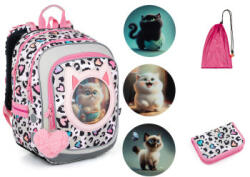 Kedvezményes árú iskolatáska szett tolltartóval és cipőzsákkal. A szett az alábbi termékeket tartalmazza: ENDY 23037 - Könnyű iskolatáska cicákkal, PENN 23037 - Tolltartó, ZUZA 19045 - Iskolai zsák