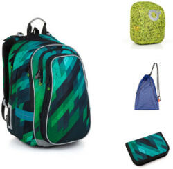 Kedvezményes árú iskolatáska szett tolltartóval, cipőzsákkal és esővédővel. A szett az alábbi termékeket tartalmazza: LYNN 23018 - Kékesöld iskolatáska , PENN 23018 - Tolltartó, ZUZA 19046 - Iskolai zsák, ZIGI 17001 - Esővédő