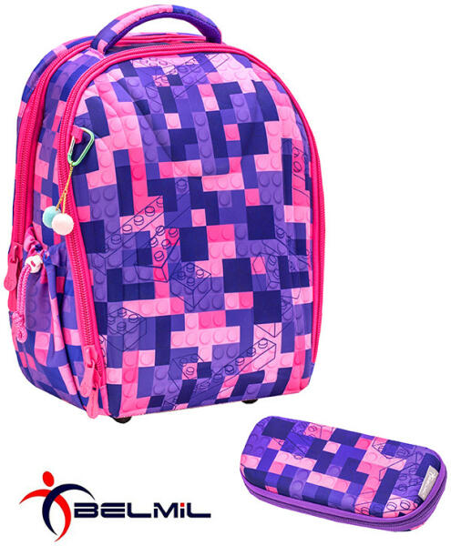 Belmil 3 részes kisiskolás táska szett. Iskolatáska + tornazsák + tolltartó. 1 db Belmil ergonómikus könnyű kisiskolás iskolatáska. Ajánlott életkor 6-9 év. Anyaga prémium víztaszító poliészter. Ergonómikus, légcsatornás, párnázott hát kialakítás. Íves, párnázott, ergonómikus, állítható vállpántok. Erős, fix kézbefogó fogantyú a tetején. Mindkét oldalán k