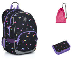 Kedvezményes árú iskolatáska szett tolltartóval és cipőzsákkal. A szett az alábbi termékeket tartalmazza: KIMI 24010 - Pöttyös iskolatáska, PENN 24010 - Tolltartó, ZUZA 19045 - Iskolai zsák