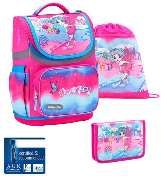 Belmil 3 részes kisiskolás táska szett. Iskolatáska + tornazsák + tolltartó. 1 db Belmil ergonómikus könnyű kisiskolás iskolatáska. Ajánlott életkor 6-9 év. Anyaga prémium víztaszító poliészter. Ergonómikus, légcsatornás, párnázott hát kialakítás. Íves, párnázott, ergonómikus, állítható vállpántok. Erős, fix kézbefogó fogantyú a tetején. Mindkét oldalán k