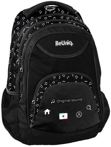 A BeUniq Music hátizsák, iskolatáska - 3 rekeszes - Sound fekete alapszínével és egyedi mintáival a nagyobb korosztály ruhatárának divatos kiegészítője. A hátizsák 3 különböző méretű cipzáras rekesszel, elöl plusz 1 kisebb cipzáras zsebbel és 2 hálós oldalzsebbel rendelkezik. A fő rekeszben található egy laptop tartó , a másik rekeszben egy rendszerező zseb , mely