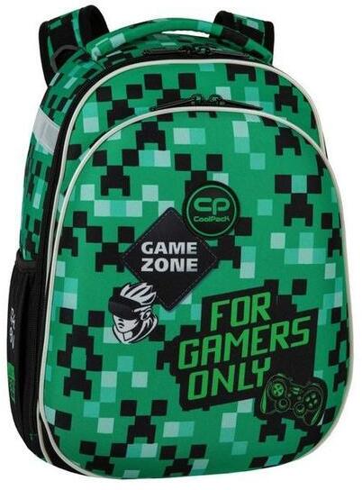 A Coolpack - Turtle iskolatáska, hátizsák - 2 rekeszes - Game Zone (F015826) a kisiskolás korosztály ruhatárának div atos kiegészítője. A hátizsák 2 különböző méretű, cipzáras rekesszel rendelkezik . Két nagy rekeszében könnyedén elfér az A4 -es formátum, ami az iskolai tankönyvek hagyományos mérete. A hátizsák oldalán két zseb található, amelyekben szabadon és b