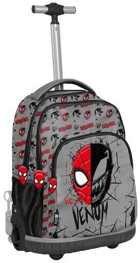 A Pókember gurulós hátizsák, iskolatáska - Venom praktikus, gerinckímélő megoldást kínál az iskolás korosztály számára. A könyvek, füzetek és a tolltartó 3 különböző méretű rekeszbe pakolható. Kétoldalt egy-egy kis hálós zsebben tárolható az innivaló. Strapabíró és könnyen forgó kerekeken gurul. A hátizsák fém húzóját a fogantyún lévő gomb megnyomásá