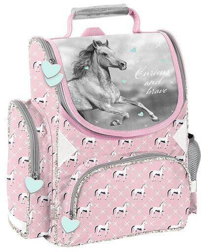 A Lovas ergonomikus iskolatáska - Gallop egy csodálatos paripa képével, 1-2. osztályos kisiskolásoknak. Az ergonomikus megnevezés azt takarja, hogy a tervezés során figyelembe veszik a kisiskolás korú gyermekek testi adottságait és olyan hátizsákot készítenek, mely kíméli a gerincet, segíti a helyes testtartást. A könnyített (900g) táska oldala merevített , hátsó része