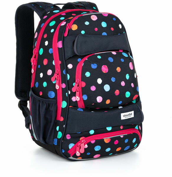 Hátizsák kifejezetten a fiatalok igényeinek megfelelő tagolással és divatos mintával, 28 literes űrtartalommal. Kialakításuk: 2 tágas tárolórekesz, akadálymentesen állítható és párnázott vállpántok, állítható mellkaspánt, párnázott hátfal, 1 cipzáras rendszerező zseb kulcskarikával, 1 cipzáras első zseb, 2 oldalzseb. Hátizsák kifejezetten a fiatalok igényeinek