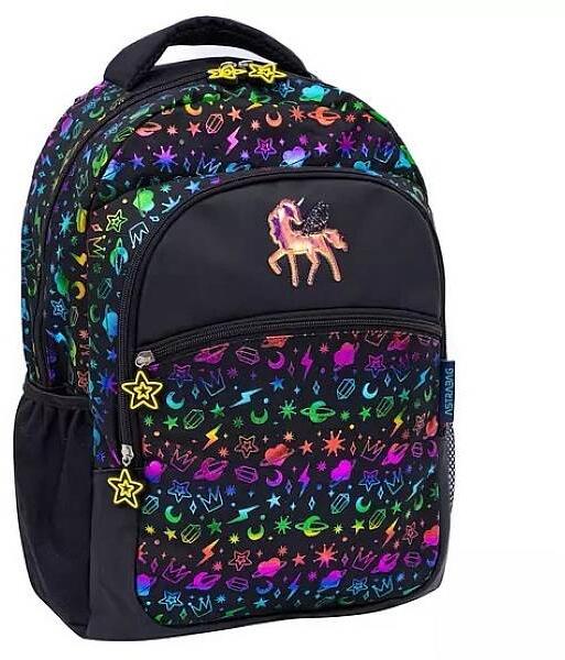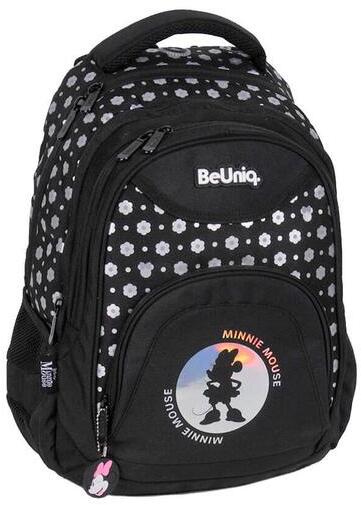 A BeUniq hátizsák, iskolatáska - 3 rekeszes - Disney - Minnie Mouse - Hologram (DM24YY-2708) cuki, Minnie Mouse mintájával a nagyobb korosztály ruhatárának divatos és egyedi kiegészítője. A hátizsák 3 különböző méretű cipzáras rekesszel, elöl plusz 1 kisebb cipzáras zsebbel és 2 hálós oldalzsebbel rendelkezik. A fő rekeszben található egy laptop tartó , a másik rekes