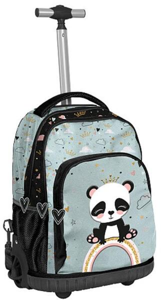 Ez a táska egyszerűen imádnivaló! Egyrészt mert gurul, tehát megóvja a gyermeket a cipekedéstől, húzószerkezete és kereke megoldja ezt a gondot, de természetesen szükség esetén kézben is vihető. Ráadásul egy bájos panda képe látható rajta, ami mindenkit jókedvre derít. 3 rekesszel rendelkezik A rekeszek cipzárral záródnak, fogantyúján különleges gumiemblémával, v