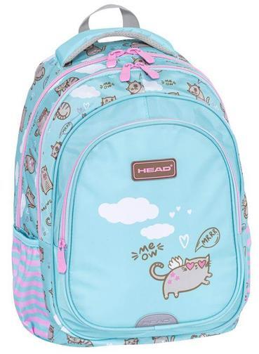 A Meow ergonomikus iskolatáska, hátizsák - 2 rekeszes - Head - 42 cm (502024104) a kisiskolások számára. A hátizsák 2 cipzáras rekesszel , 1 kisebb, cipzáras zsebbel és két oldalsó hálós zsebbel rendelkezik. Hátoldala merevített, ergonomikus kialakí tású, vállpántja állítható hosszúságú, szintén szivacsos borítással. A táska a tetején lévő megerősített foganty