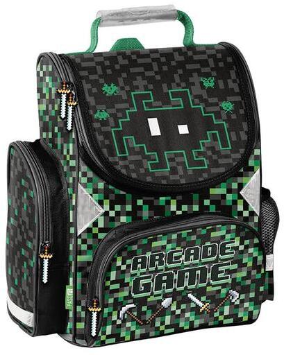 Game ergonomikus iskolatáska - Arcade Game (PP24MC-525) menő, videójáték témájú minta díszíti. Az ergonomikus megnevezés azt takarja, hogy a tervezés során figyelembe veszik a kisiskolás korú gyermekek testi adottságait és olyan hátizsákot készítenek, mely kíméli a gerincet, segíti a helyes testtartást. A táska oldala merevített, hátsó része a gerinc két oldalán és