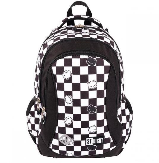 Ez a St. Right - Kockás ergonomikus iskolatáska, hátizsák - 3 rekeszes - Chess Cats (664403) , melynek mintája fekete-fehér kockás és cuki cicákkal díszített. Az ergonomikus megn evezés azt takarja, hogy a tervezés során figyelembe veszik a kisiskolás korú gyermekek testi adottságait és olyan hátizsákot készítenek, mely kíméli a gerincet, segíti a helyes testtartást. A t