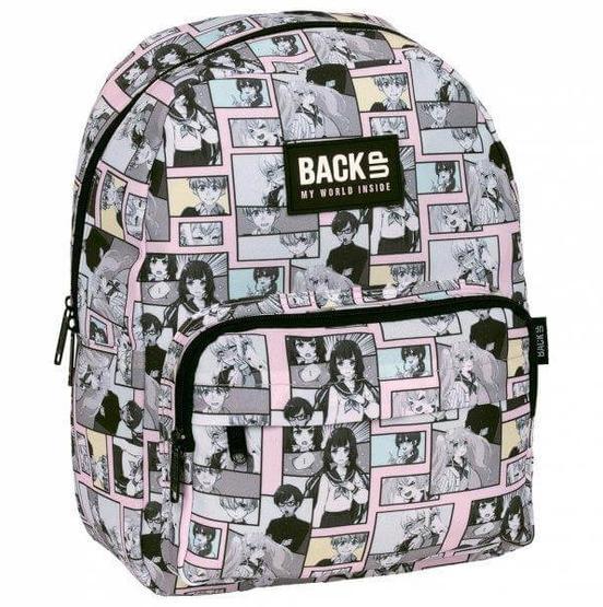 A BackUp Mangás hátizsák - 1 rekeszes - Anime (PLB6F02) trendi animés mintákkal dekorálva a nagyobb korosztály ruhatárának kiegészítője. A hátizsák egy nagy rekesszel és egy kisebb méretű, cipzáras zsebbel rendelkezik. A légáteresztő hálóval borított, szivacsos vállpánt állítható, ami még kényelmesebbé teszi viselését. A hátizsák anyaga vízálló, a tetején l