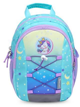 Hátizsák a legkisebbeknek is -2 belső + 2 oldalsó rekesz (0,5 l) -bővíthető elülső zseb (+6 cm) -az optimális súlyeloszlás érdekében állítható mellkas pánt -minden oldalán fényvisszaverő elemek -anyag: vízálló poliészter -mosógépben mosható -cipzáras záródás kis kezekre tervezve -méret: 23x9 (+6)x13 cm -súly: 270-290 g -ajánlott bölcsődés korosztály számára
