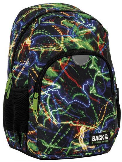 A BackUp hátizsák mellpánttal - 1 rekeszes - Lines egyedi, színes mintákkal dekorálva a nagyobb korosztály ruhatárának kiegészítője. A hátizsák egy nagy rekesszel, egy kisebb méretű, cipzáras zsebbel és két kis hálós oldalzsebbel rendelkezik. A légáteresztő hálóval borított, szivacsos vállpánt állítható, a rajta lévő mellkaspánt tal pedig még kényelmesebbé tes