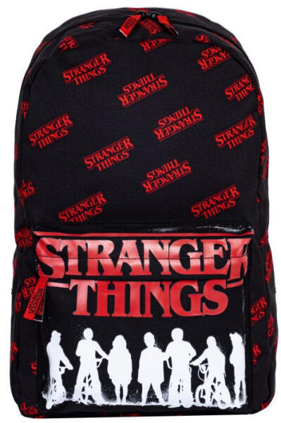 Szövet hátizsák elején nyomott motívummal, felül cipzárral és füllel, állítható, párnázott vállpánttal, egy cipzáros külső rekesszel, egy gumis szegős belső rekesszel, párnázott hátlappal.