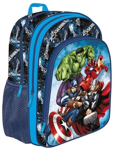 Az Avengers hátizsák, iskolatáska - Bosszúállók a kisebb korosztály számára ideális választás. A kék alapszínű táskát a méltán híres szuperhősök képe díszíti. A hátizsák 2 cipzáras rekesszel és két kis hálós oldalzsebbel rendelkezik. Főrekeszében kényelmesen tárolható minden szükséges holmi. Hátoldala szivacsos, á llítható vállpántja párnázott . Az Av