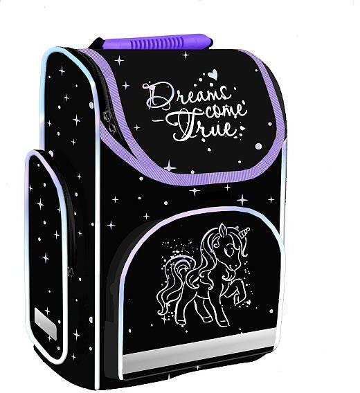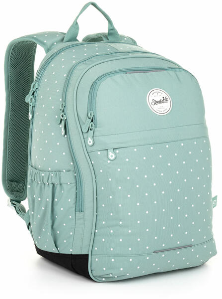 Fő jellemzői: súlya 1 200 gramm préselt anatómiailag formázott hátrész merevítéssel két rekesszel, két elülső zsebbel állítható magasságú mellkaspánt párnázott puha vállpántok fényvisszaverő elemek esőgátló bevonat TOPDURA anyagból készült szilárd aljzat az iskolatáskát az ITC Zlín tesztelte fogantyú az iskolatáska padra akasztásához és kézben való hordoz