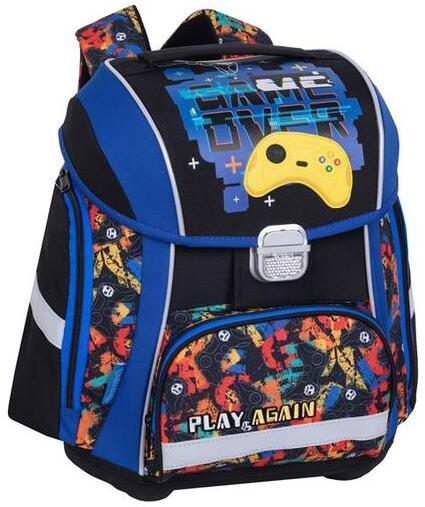 A Gamer ergonomikus iskolatáska, hátizsák kifejezetten a kisebb korosztály számára készült! A hátizsák két nagyobb és egy kisebb cipzáras rekesszel és két oldalsó hálós zsebbel rendelkezik. Hátoldala merevített, ergonomikus kialakí tású, légáteresztő hálós szivaccsal borított. Vállpántja állítható, szintén szivacsos borítású, a tetején lévő megerősített f