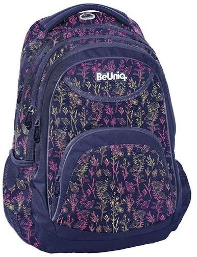 A BeUniq hátizsák, iskolatáska - 3 rekeszes - Pillangók (BU24HO-2708) cuki pillangós, virágos mintájával a nagyobb korosztály ruhatárának divatos és egyedi kiegészítője. A hátizsák 3 különböző méretű cipzáras rekesszel, elöl plusz 1 kisebb cipzáras zsebbel és 2 hálós oldalzsebbel rendelkezik. A fő rekeszben található egy laptop tartó , a másik rekeszben egy rendsz