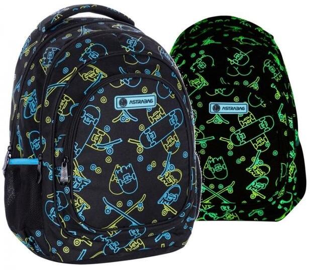 A Neon Skate ergonomikus iskolatáska, hátizsák sötétben foszforeszkáló gördeszkás mintájával igazán egyedi és menő. A design hátizsák 3 cipzáras rekesszel és két oldalsó hálós zsebbel rendelkezik. Hátoldala merevített, ergonomikus kialakí tású, vállpántja állítható hosszúságú, szintén szivacsos borítással. A mellkaspánt leveszi a gyermek válláról a terhel