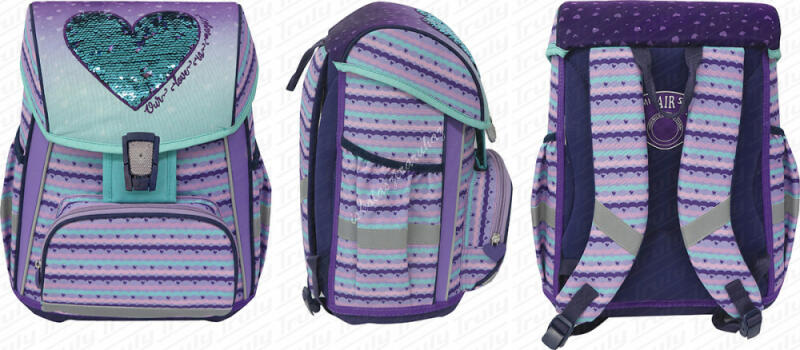 Street Heart iskolatáska Ennek az iskolatáskának a hátrésze ergonomikusan lett kialakítva, hogy viselője hátára tökéletesen, és kényelmesen illeszkedjen. Olyan anyagból készült a párnázott rész, hogy az szellőző legyen. A vállpántok 6 cm szélességűek, párnázottak, megerősítettek és természetesen állíthatók. A biztonságért a számtalan fényvisszaverő csík fel