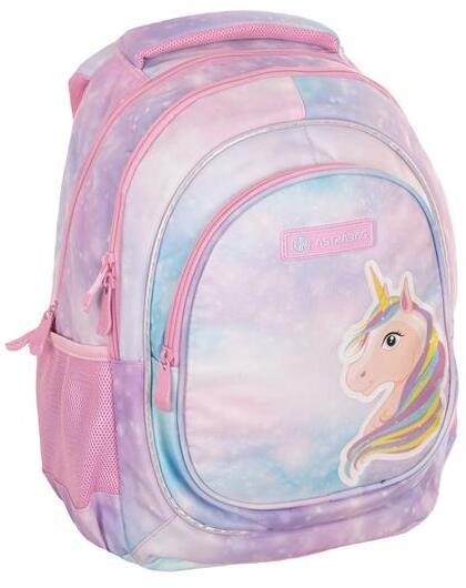 A Fairy Unicorn ergonomikus iskolatáska, hátizsák gyönyörű színvilágával és színes unikornis képével igazán különleges. A design hátizsák 3 cipzáras rekesszel és két oldalsó hálós zsebbel rendelkezik. Hátoldala merevített, ergonomikus kialakí tású, vállpántja állítható hosszúságú, szintén szivacsos borítással. A mellkaspánt leveszi a gyermek válláról a t