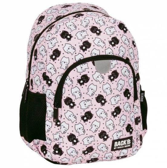 A BackUp Cicás hátizsák - 1 rekeszes - Táncoló cicák (PLB6T32) cuki cicákkal dekorálva a nagyobb korosztály ruhatárának kiegészítője. A hátizsák egy nagy rekesszel és egy kisebb méretű, cipzáras zsebbel rendelkezik. A légáteresztő hálóval borított, szivacsos vállpánt állítható, ami még kényelmesebbé teszi viselését. A hátizsák anyaga vízálló, a tetején lé