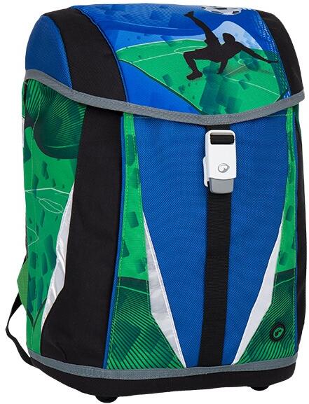 Egy kamrás iskolai táska a foci motívummal / hátizsák alkalmas az elsősök fiúk számára keresztül a negyedik évfolyam az általános iskola tanulók számára. A fő kamra a könyvek és A4 méretű füzettartók elhelyezésére alkalmas. Az iskolai segédeszközöket lehet elkülöníteni egy zsebbel vagy rugalmas gumi segítségével lehet hatékonyan elkülöníteni. A fő kamra bels