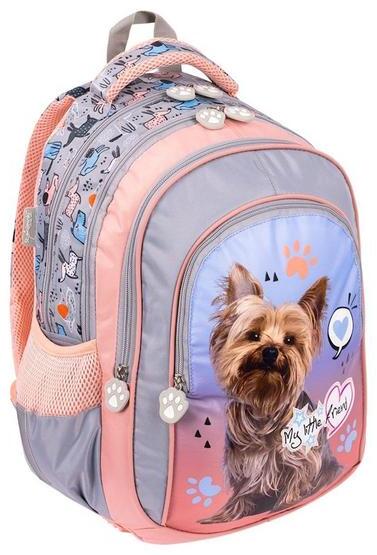 My little friend - Kutyás ergonomikus iskolatáska, hátizsák - 4 rekeszes (668456) , mely cuki yorki kutyus mintával van ellátva, a kislányok kedvence lesz! Vízálló és tartós anyagból készült. A hátizsák nagyon tágas, 3 nagy rekesszel, illetve egy kisebb első rekesszel rendelkezik . Az első rekeszben praktikus rendszerező található egy kulcstartóval, amely segít a rend fenn