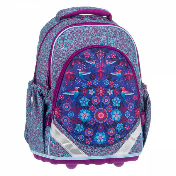 Nagyméretű, 1 rekeszes iskolatáskaelöl rendszerezővel, 11-18 éves kor közötti iskolásoknak és diákoknak. Az egyedülálló ergonómikus rendszernek köszönhetően ez a hátizsák minden 140-180 cm-es gyermek számára egyénileg állítható. Ennek a hátizsáknak az előnyei: csúszó mellkasi heveder és párnázott derékpánt - ennek köszönhetően a terhelés akár 50%-a átkerü