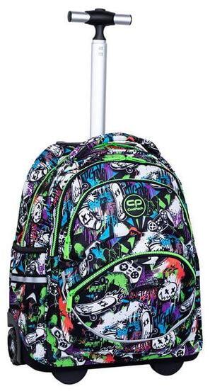 A menő gördeszkás mintával dekorált Coolpack - Starr gurulós iskolatáska, hátizsák - 2 rekeszes - Peek a bo az iskolás korosztály ruhatárának divatos kiegészítője. A hátizsák 2 különböző méretű, cipzáras rekesszel rendelkezik . Strapabíró kerekeken gurul, a hátizsák háton is hordható. Két nagy rekeszében könnyedén elfér az A4 -es formátum, ami az iskolai tankö