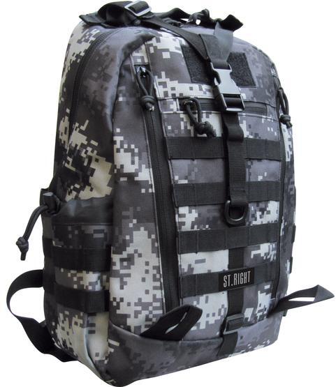 St. Right - Military hátizsák, iskolatáska (619557) a nagyobb korosztály számára készült. A hátizsák 1 nagyméretű cipzáras rekesszel, 4 kisebb külső cipzáras és 2 belső cipzáras zsebbel rendelkezik. A főrekeszben hálós és vízzáró zseb is található. Felső részén összehúzó szalag, elején MOLLE rendszerű rögzítő szalagok, vállpántján pedig D-Ring szemek talá