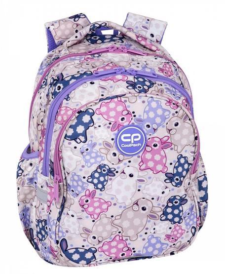 A cuki nyuszis mintával dekorált Coolpack - Jerry ergonomikus iskolatáska, hátizsák - 3 rekeszes - White Bunny (F029833) a kisiskolás korosztály ruhatárának div atos kiegészítője. A hátizsák 3 különböző méretű, cipzáras rekesszel rendelkezik . Két nagy rekeszében könnyedén elfér az A4 -es formátum, ami az iskolai tankönyvek hagyományos mérete. A hátizsák oldalán k