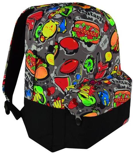 St. Right - Fast Food hátizsák, iskolatáska - 1 rekeszes (617133) a nagyobb korosztály ruhatárának vidám kiegészítője. A hátizsák 1 nagyobb méretű rekesszel és egy kisebb cipzáras zsebbel rendelkezik. A nagy rekeszben egy laptoptartó rekesz és még egy kisebb rendszerező zseb is található. Állítható vállpántja szivacsos, alsó része szivaccsal megerősített. A hátizsá