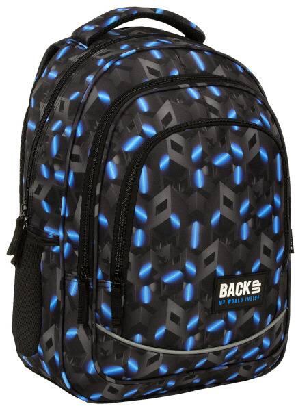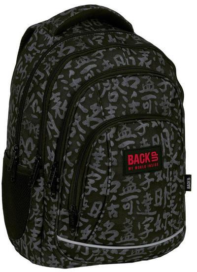A BackUp ergonomikus iskolatáska, hátizsák - Mask vagá ny maszkos mintázatával az iskolások ruhatárának trendi kiegészítője. A hátizsák 3 különböző méretű cipzáras rekeszében elférnek a könyvek, füzetek, elején pedig kis cipzáras zseb található. Kétoldalt egy-egy hálós zseb található az innivaló, esernyő tárolására. Hátoldala merevített, ergonomikus kialak