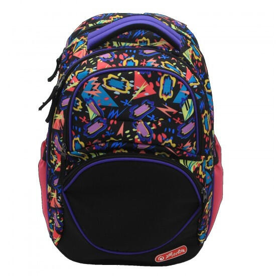 Hátizsák kifejezetten a fiatalok igényeinek megfelelő tagolással és divatos mintával, 28 literes űrtartalommal. Kialakításuk: 2 tágas tárolórekesz, akadálymentesen állítható és párnázott vállpántok, állítható mellkaspánt, párnázott hátfal, 1 cipzáras rendszerező zseb kulcskarikával, 1 cipzáras első zseb, 2 oldalzseb. Hátizsák kifejezetten a fiatalok igényeinek