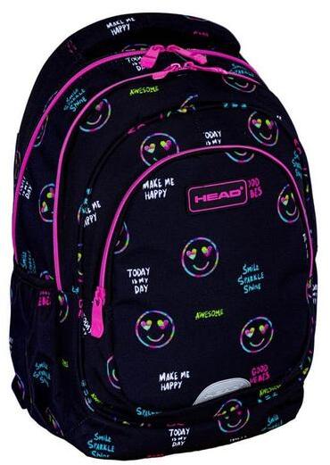 A Smile Sparkle Shine ergonomikus iskolatáska, hátizsák - 2 rekeszes - Head - 39 cm (502024053) a kisiskolások számára. A hátizsák 2 cipzáras rekesszel , 1 kisebb, cipzáras zsebbel és két oldalsó hálós zsebbel rendelkezik. Hátoldala merevített, ergonomikus kialakí tású, vállpántja állítható hosszúságú, szintén szivacsos borítással. A táska a tetején lévő megerős