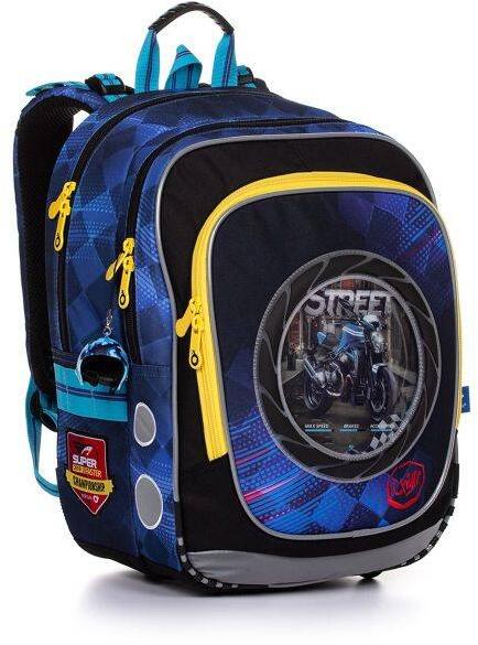 SoftLight ergonomikus iskolatáska, cserélhető táskadísszel, töltött, méret: 38x28x23 cm, önsúly: 900g, űrtartalom: 16 liter, alapanyag: poliészter, impregnált réteggel az eső és a nedvesség ellen. Különlegességek: jól szellőző hátkialakítás, akadálymentesen állítható vállpántok, állítható mellkaspánt, megerősített alsó panel, praktikus fogófül, Fidlock mág