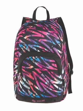 PULSE Vedd fel a ritmust! -rekeszek: 1 nagy belső rekesz + 1 elülső rekesz -banán formájú vállszíjak -három rétegű, dupla aljzat, belső hálóó -fém cipzár -anyag: 600d poliészter -méret: 44x29x18cm -súly: 0,42kg