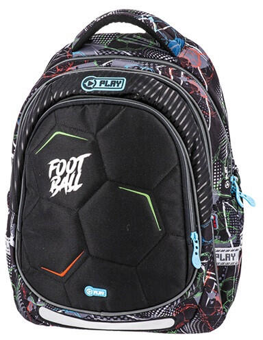 Hátitáska anatómiai Play Maxx football fekete A Maxx anatómiai hátizsák kiváló választás mindennapi használatra. A hátizsák anyaga vízálló, háromszor varrott, és magas minőségű poliészterből készült. A reflektív biztonsági szalagok és az állítható banán alakú vállpántok növelik a viselő biztonságát és kényelmét. A hátizsák könnyű, de mégis tartós, é
