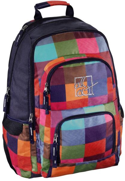 Hama ''All Out'' Iskola- hátizsák (külön tartozékokat nem tartalmaz). Tulajdonságok: Párnázott hátfal S alakú, kényelmes vállpántok Extra mellkaspánt a stabilitásért 2 külső hálós rekesz Párnázott laptop tartó rekesz Nagyméretű pakoló rekesz (A4 méretű dokumentumok, iratok, könyvek stb. tárolására) Kisebb pakoló rekesz rendező zsebekkel 2 cipzáras elülső zseb K