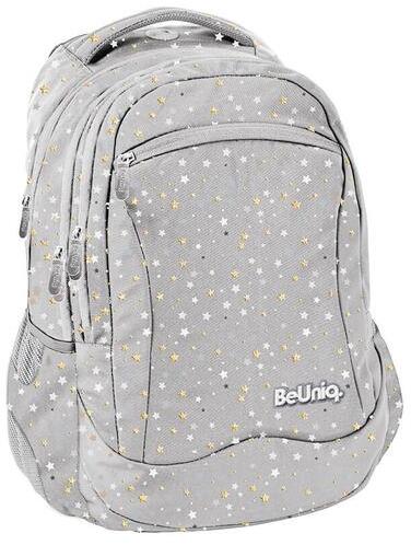 A BeUniq iskolatáska, hátizsák - 3 rekeszes - Csillagok (BU24GW-2808) cuki csillagos mintájával és vízlepergető anyagával a nagyobb korosztály ruhatárának divatos kiegészítője. A hátizsák 3 különböző méretű cipzáras rekesszel, elöl plusz 1 kisebb cipzáras zsebbel és 2 hálós oldalzsebbel rendelkezik. A fő rekeszben található egy laptop tartó- és egy mobiltelefontar
