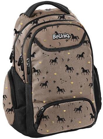 A BeUniq Unikornis hátizsák, iskolatáska - 3 rekeszes - Brown világosbarna alapszínével és egyszarvú mintájával a nagyobb korosztály ruhatárának divatos kiegészítője. A hátizsák 3 különböző méretű cipzáras rekesszel, elöl plusz 1 kisebb zsebbel, valamint kétoldalt cipzáras oldalzsebekkel rendelkezik. A fő rekeszben található egy laptop tartó zseb, a tetején kialak